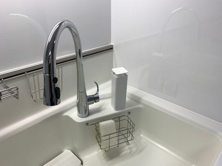 シンクで洗い物をする時、片手にスポンジ、片手に洗剤ボトル