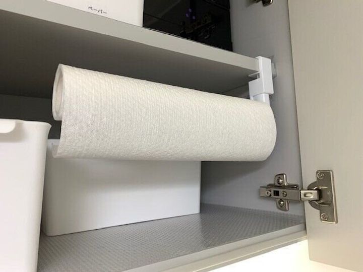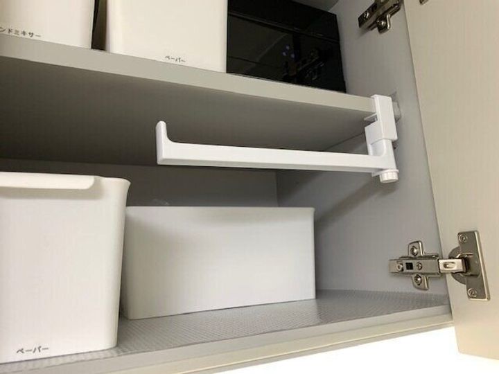 これで「吊戸棚の中にキッチンペーパーホルダーを設置する」という野望が叶いました。