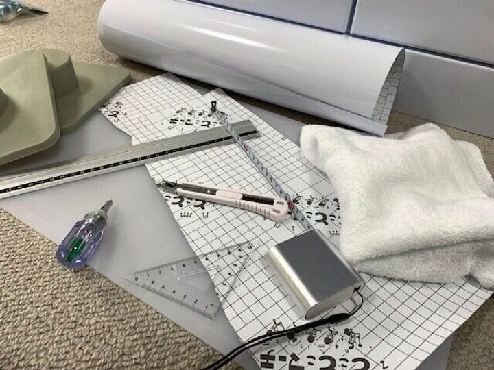 あと、シートは貼り付けてから端をカットして処理するのですが、カッターの刃の切れが悪いとうまくいきませんので、刃は取り替えるなどしてよく切れる状態にしておくと良いです。