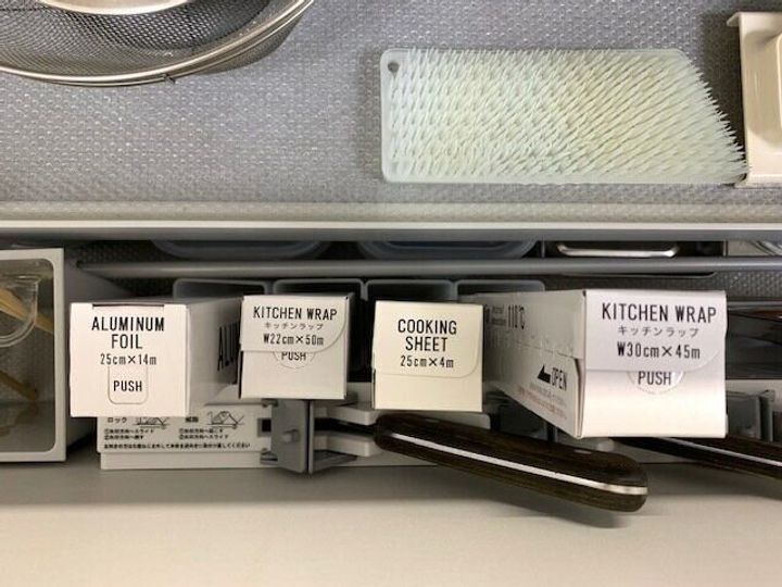 ラップ大・ラップ小・アルミホイル・クッキングシート用に4つです。