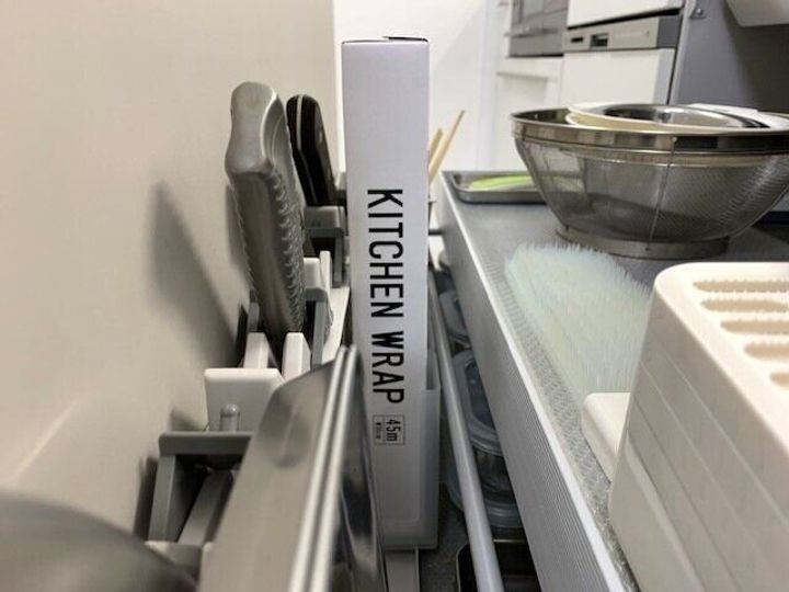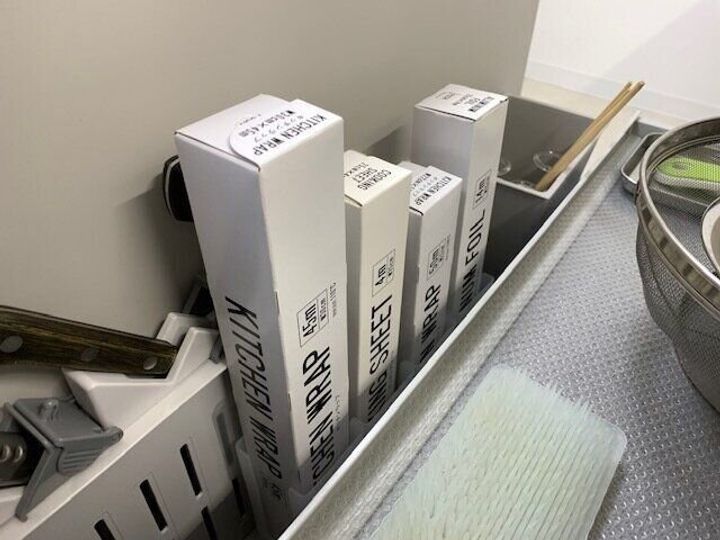セリアにラップホルダーもありましたので、教科書通りの収納を取り入れてみました。