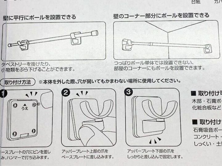 つっぱり棒は少し短かったので、もう少し長めが良さそうです。