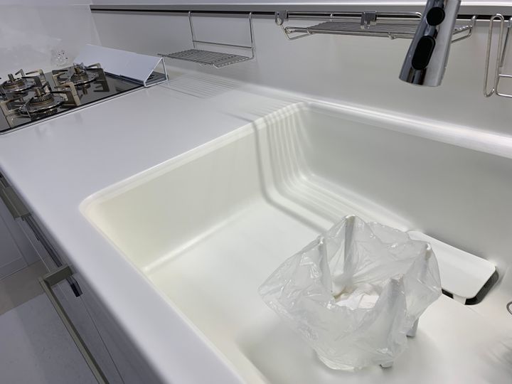 調理台またはシンクにポリ袋をセットして使うので最短の距離で捨てられます。