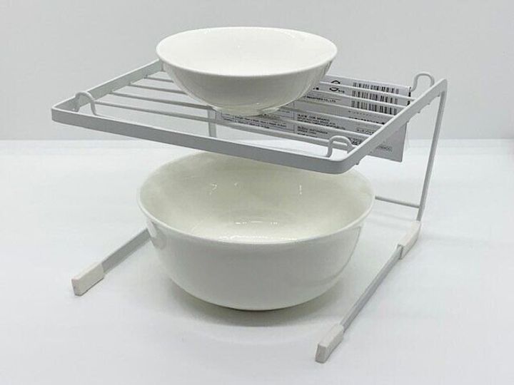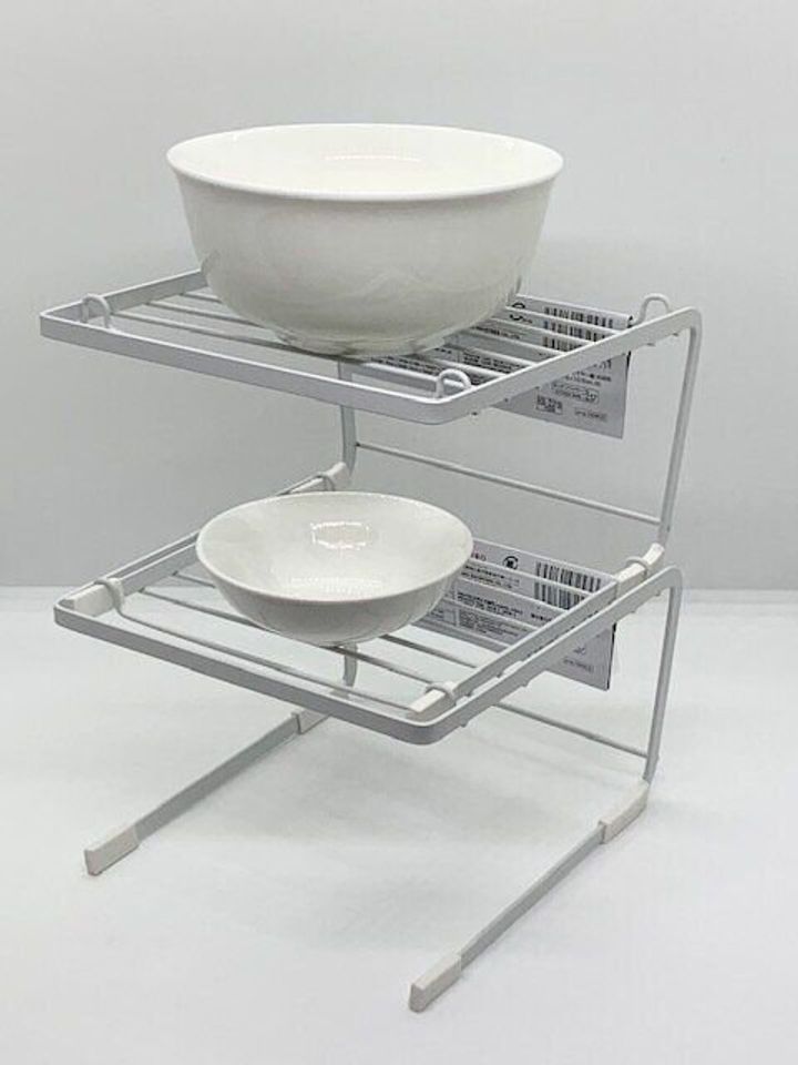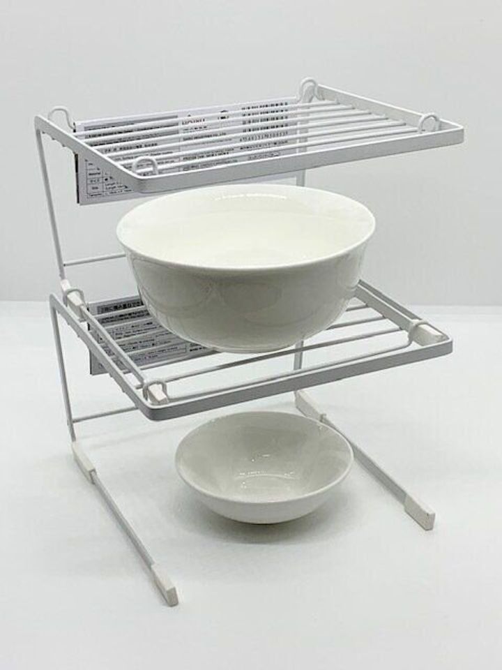 食器棚を上下に仕切って2段にしてお皿を取り出しやすくするアイテムがあります。