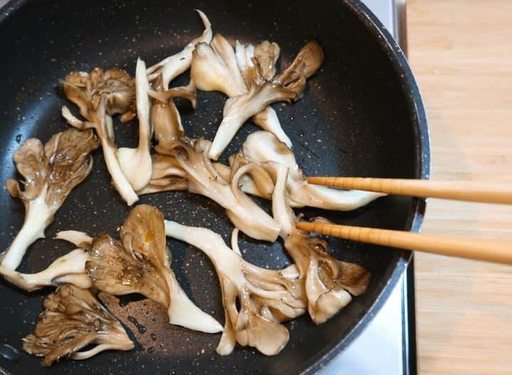 しっかりと焼き色をつけると、きのこの風味をより感じられるのでおすすめです!塩(またはハーブソルト)でかるく味をつけお皿に取り出します。