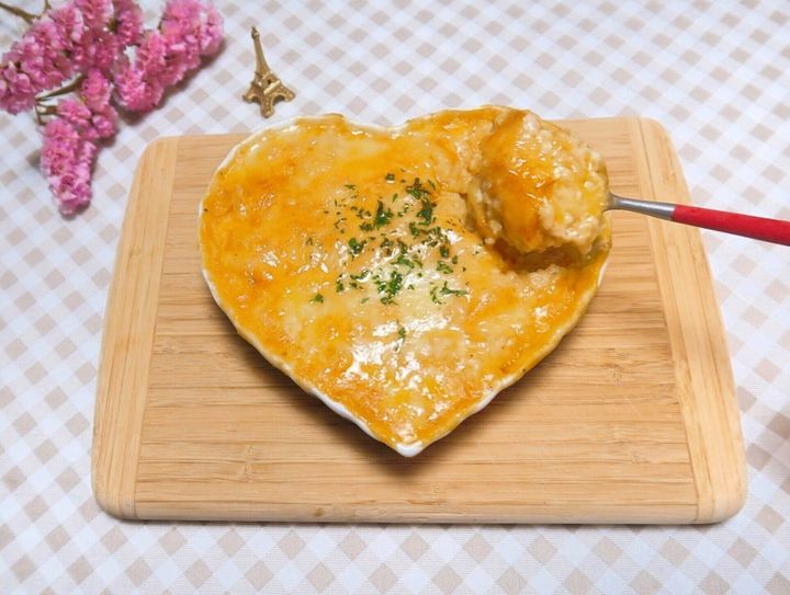 お好みでパセリのみじん切りをふりかければ、焼きチーズリゾットの完成です!ワインなどお酒との相性もばっちりなので、おうちディナーの一品としても◎。