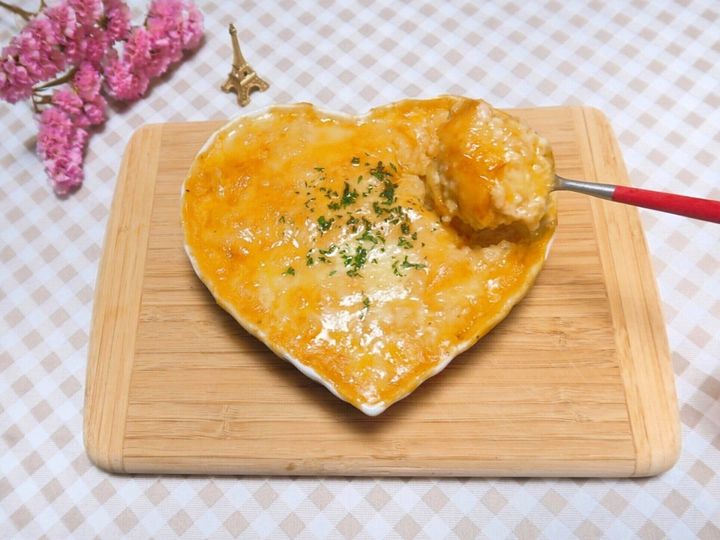 グラタン皿(または耐熱皿)にごはんを入れ、あたためたソースをかけてよく混ぜ合わせます。お好みで、オリーブオイルやブラックペッパーを加えるとさらにリッチな味わいに!