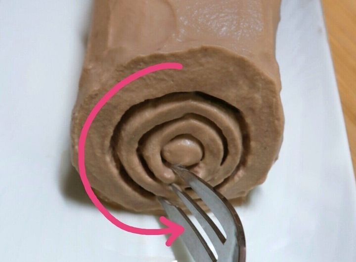 フォークを使って切り株の側面に筋をつけると、より雰囲気がでます!
