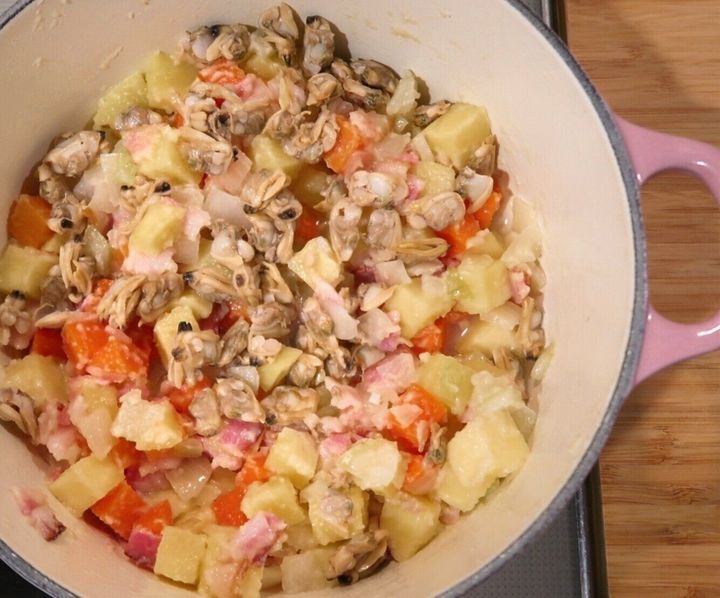 あさりの旨味たっぷり!クラムチャウダーの完成