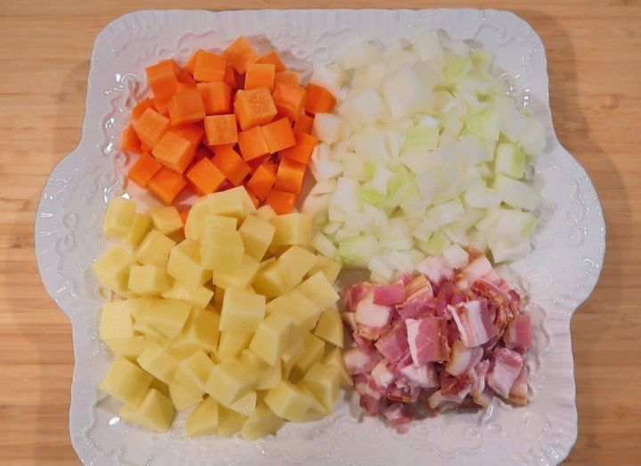 野菜、ベーコンはそれぞれ約1cm角にカットします。