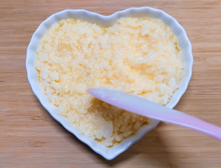 ごはんと卵を混ぜておくことでリゾットのような濃厚な味わいに!