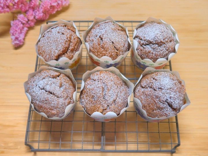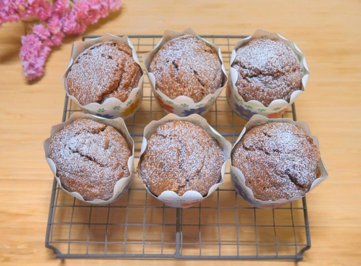 あら熱をとり、お好みで粉糖をふりかけたら「チョコバナナマフィン」の完成です!粉糖をふりかける場合は、生地を冷ましておくのがポイントです。