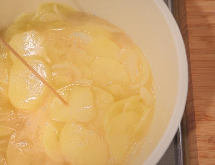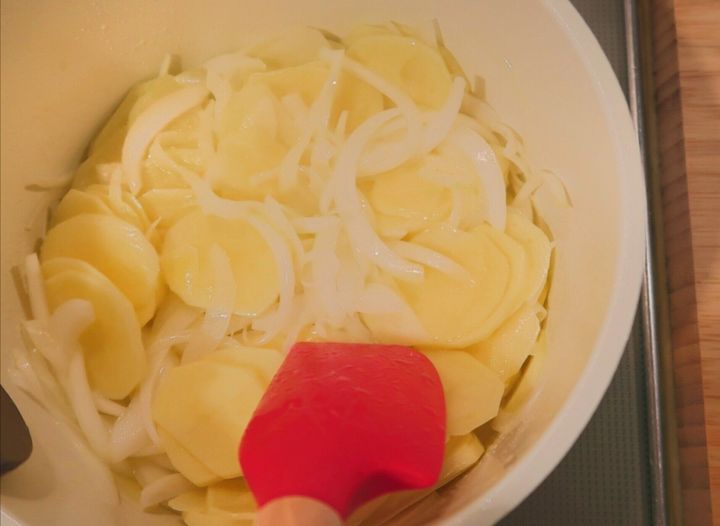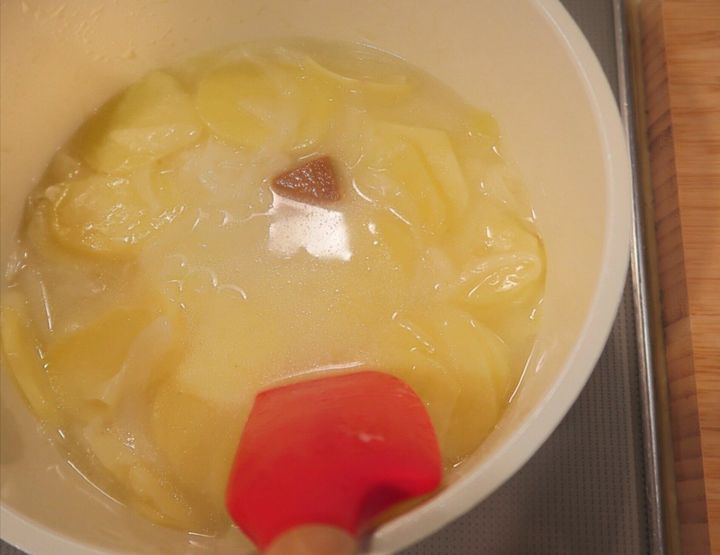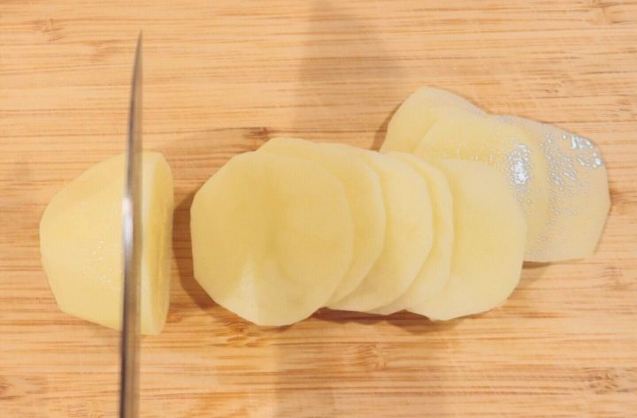 じゃがいもは皮をむき、うすめの輪切りにします。