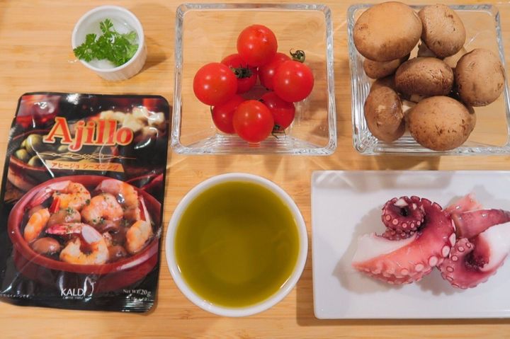 カルディの「アヒージョシーズニング」でつくる!【タコとマッシュルームの本格アヒージョ】のつくり方