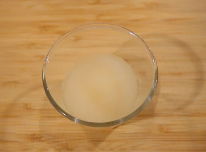ふやかしたゼラチンを、ラップをせずに600wの電子レンジで約20秒あたためます。ゼラチンが溶けきらない場合は、再び10秒ずつ様子をみながら加熱します。