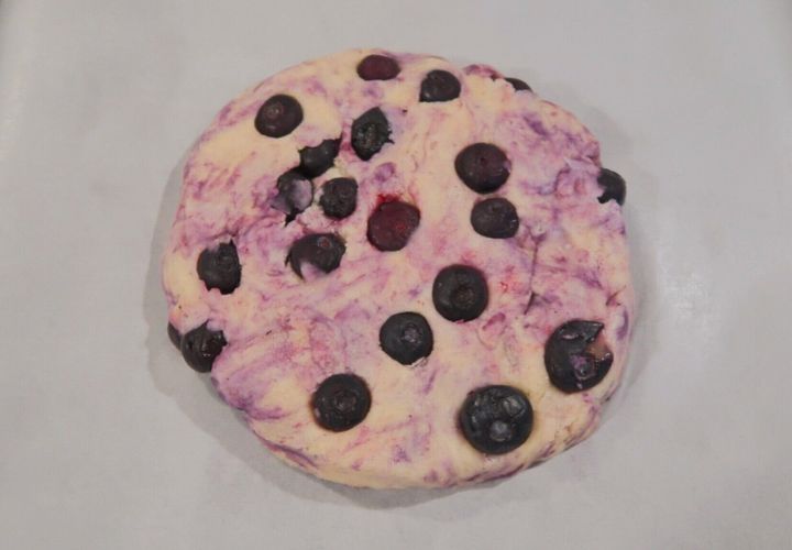 最後に冷凍ブルーベリーを加え、生地をひとまとまりにします。