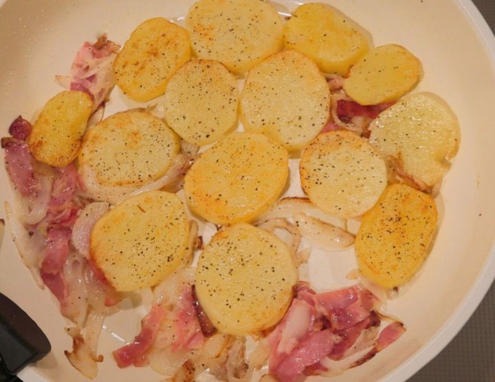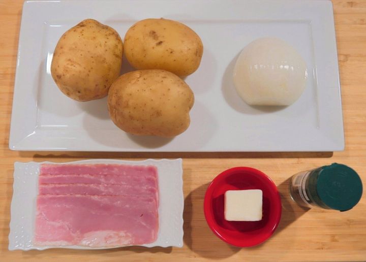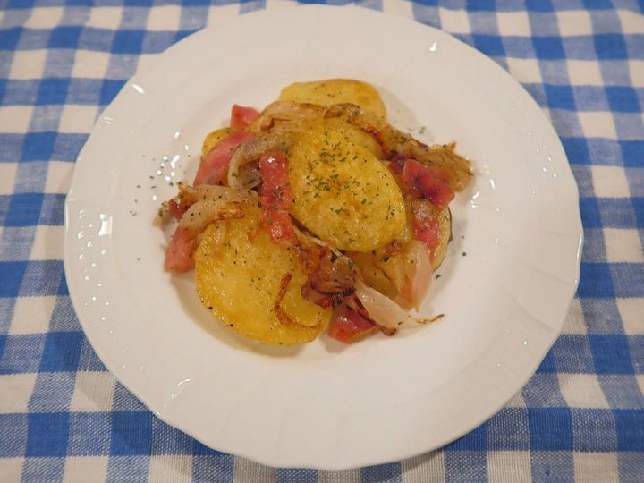シンプルな材料でつくれる「じゃがいもとベーコンのバター炒め」。