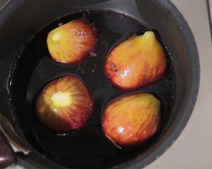 グラニュー糖が溶けたら、(1)のいちじくを加えます。