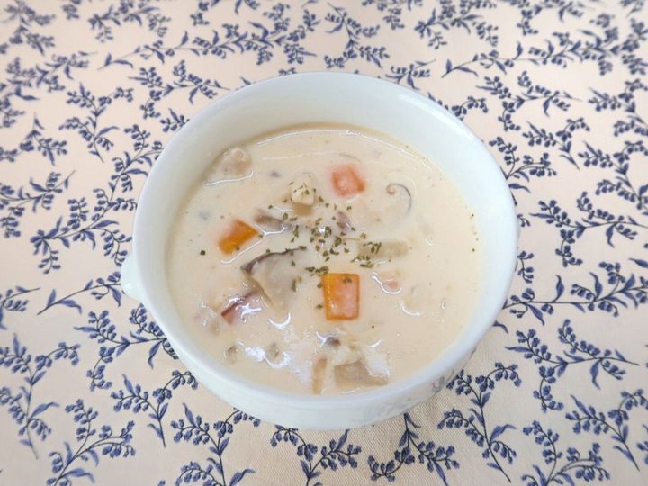 旬のしいたけをたっぷり使った、具だくさんのクリームスープ。