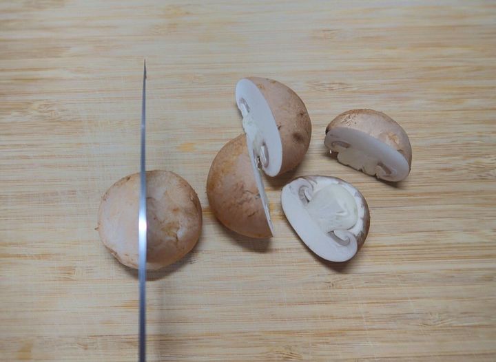 マッシュルームは洗わずに石づきを切り落とします。土などがついている場合は、湿らせたキッチンペーパーでふき取ります。