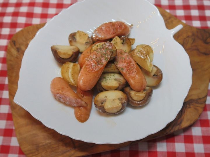 【旬食材】「マッシュルームとウインナーのにんにく炒め」のつくり方