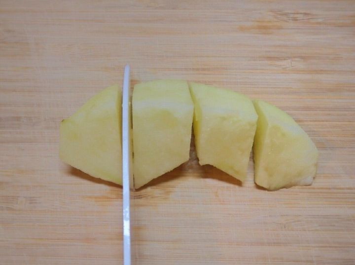 りんごはたて8等分にカットし、皮をむいて芯を取り除きます。