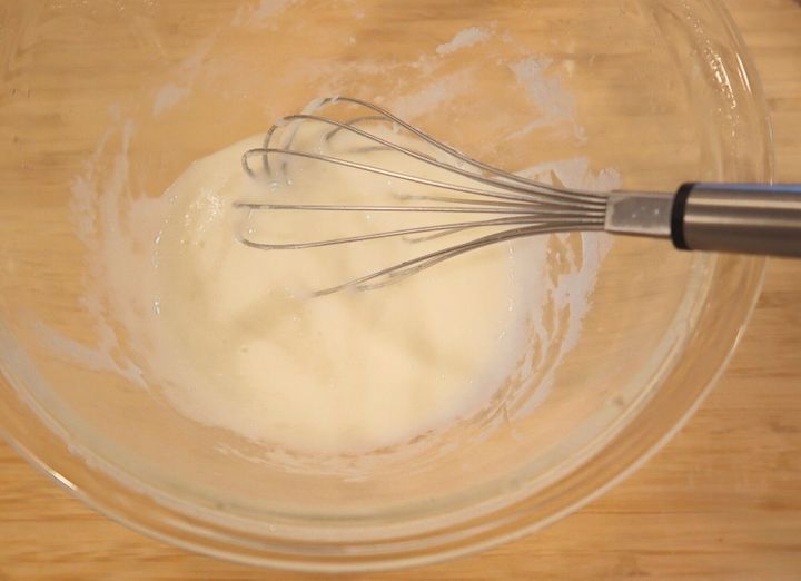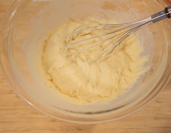 泡立て器で、全体がなめらかになるまでよく混ぜ合わせます。