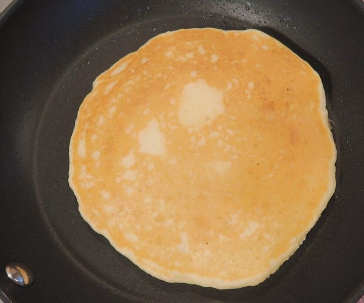 表面にフツフツと穴があいてきたら裏返し、ふたをして1〜2分蒸し焼きにします。