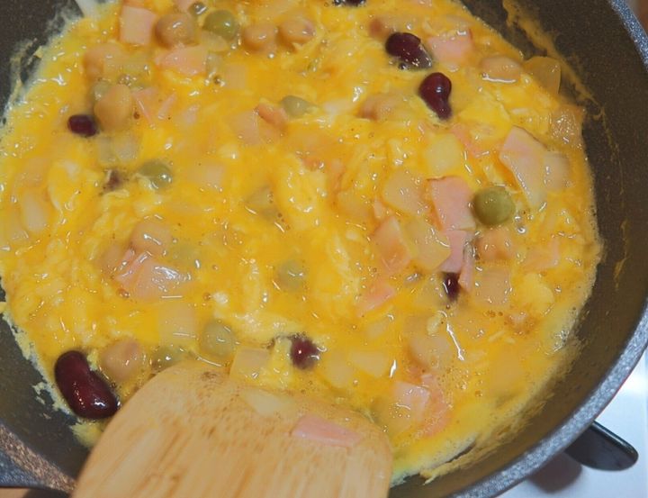 栄養たっぷり!【ミックスビーンズのスペイン風オムレツ】のつくり方