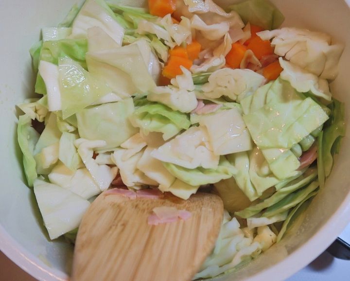粉けがなくなるまで、じっくり炒めるのがポイントです!