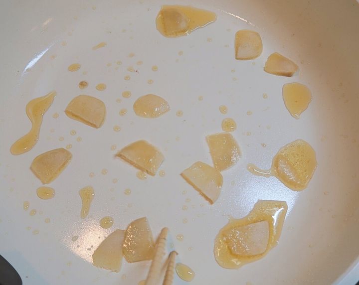 (2)フライパンで炒めます