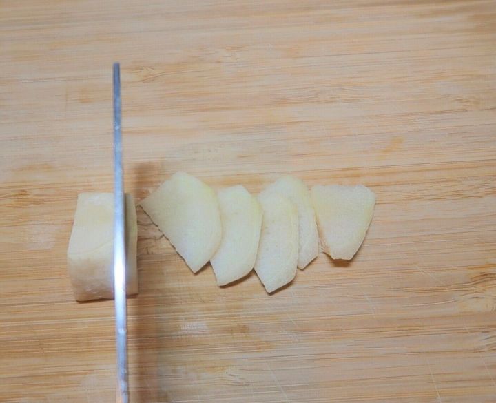 しょうがは、皮をむいて繊維を断ち切るようにスライスします。繊維に対して垂直に刃を入れることで、辛味をほどよくおさえることができます。