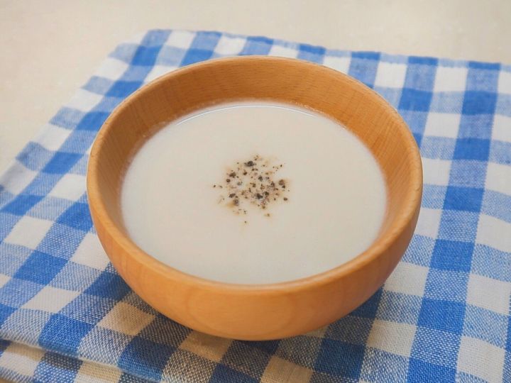 器に注ぎ、お好みでブラックペッパーをふりかけたら「舞茸のポタージュ」の完成です!舞茸の旨味とクリーミーな味わいが口いっぱいにひろがります。