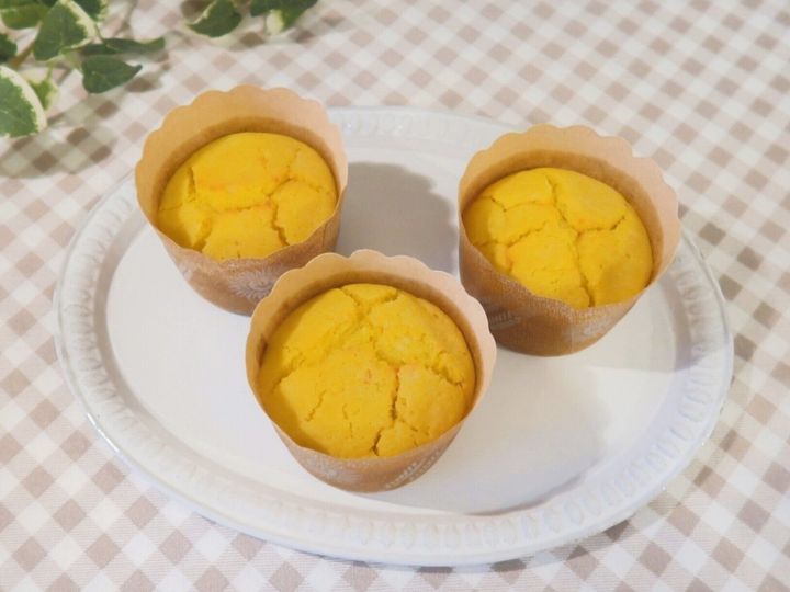ホットケーキミックスでつくる、しっとり食感の「パンプキンマフィン」。