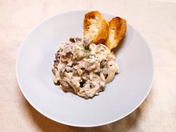 濃厚な具材の旨味と、コクのあるクリーミーな味わいが口いっぱいにひろがります!ぜひ、きのこがおいしい今の時季につくってみてくださいね。