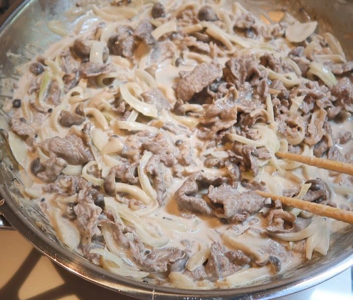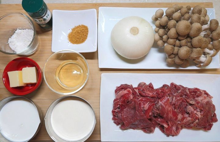 切り落とし肉でつくる【牛肉ときのこのクリーム煮】のレシピ