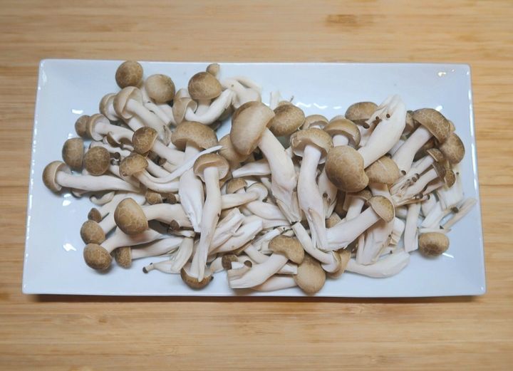 しめじは洗わずに石づきを切り落とし、手でほぐします。