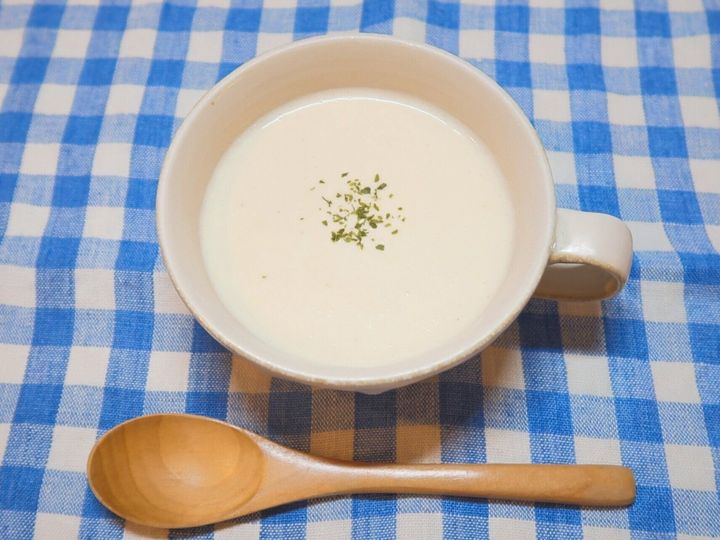 器に注ぎ、お好みでドライパセリをふりかけたら「長芋のポタージュ」の完成です!長芋のとろとろとした食感と、やさしい風味が口いっぱいにひろがります。