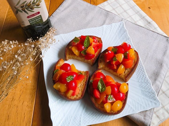 今回はトマトをたっぷりつかった、とっても簡単につくれちゃうイタリアの軽食「ブルスケッタ」のアレンジレシピをご紹介します。朝食にもぴったりな時短レシピなので、ぜひおうちで気軽にイタリアン気分をあじわってみてくださいね!