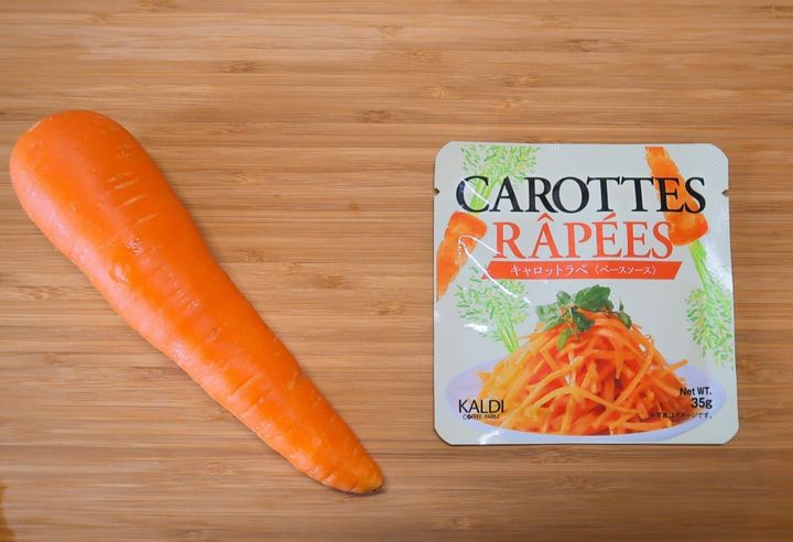 にんじん(中サイズ)1本を千切りにして「キャロットラぺ(ベースソース) 」1袋と混ぜ合わせ、馴染んだら完成です。