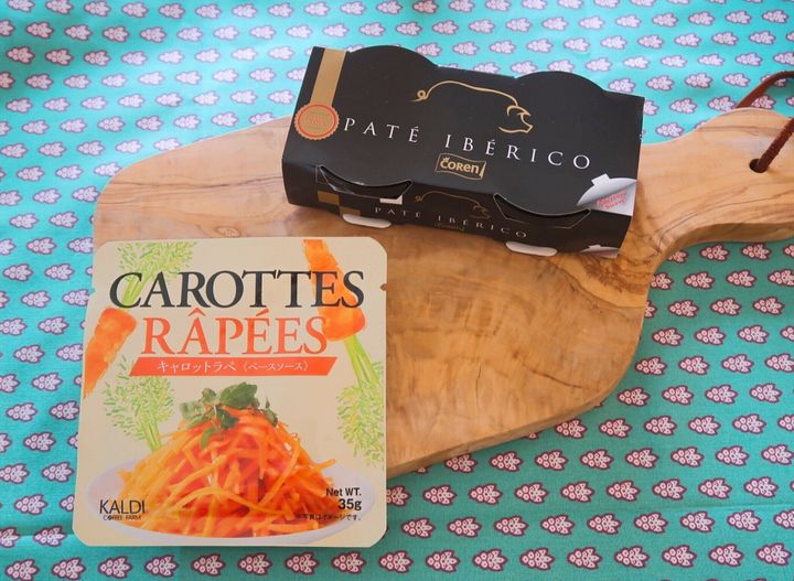 イベリコ豚レバーパテは、赤ワインなどお酒との相性もばっちり。トースターで焼いた薄切りバゲットにのせるだけで、あっという間にオシャレなおつまみが完成します!キャロットラぺとともに、おうちディナーのおつまみとしても最適です。