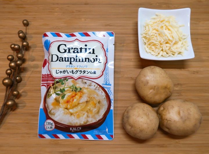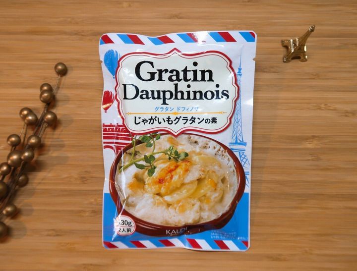 続いてはこちら。フランスのドフィネ地方の郷土料理「グラタン・ドフィノワ」があっという間に完成しちゃう、カルディオリジナルのじゃがいもグラタンの素です。