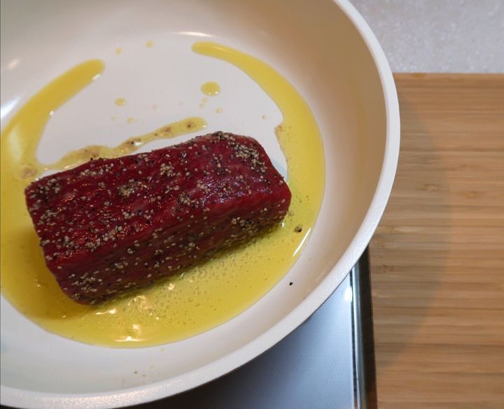 表面全体を焼きかためることで、お肉の旨味をしっかりと閉じ込めます。