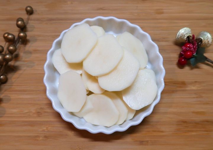 じゃがいもは、皮をむき約5ミリの厚さにスライスします。