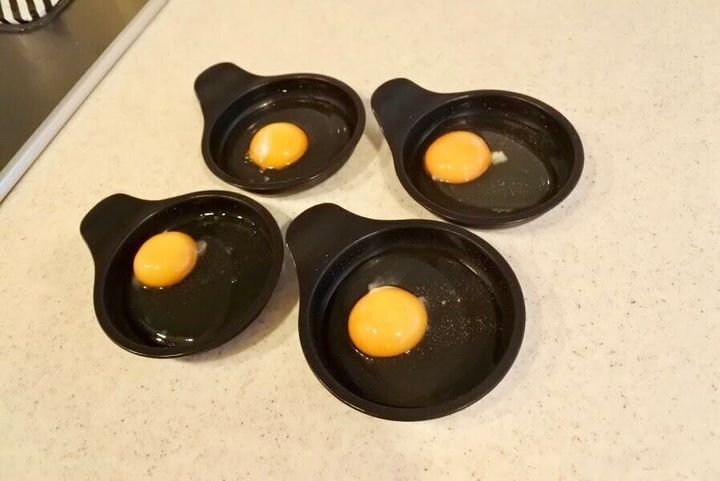 そして、大きなフライパンと蓋を洗う大変さがなくなり、この小さなプレート4枚をササッと洗うだけ。このプレートに出会ってからはフライパンで目玉焼きを作ることがなくなりました!