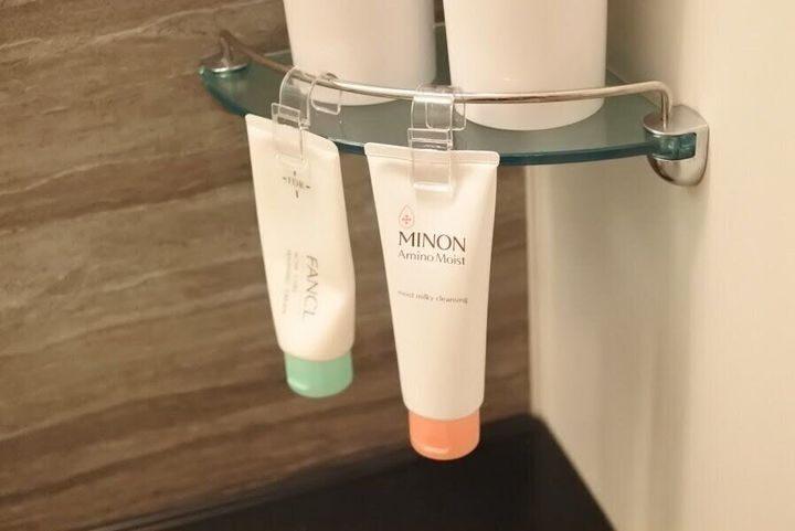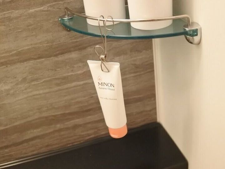 ただ、洗顔料を出そうとした時にワイヤークリップが外れてしまってクリップをつけ直さないといけないことってよくないですか?しかも、ステンレスなので石鹸カスがついてしまうと落とすのに結構大変だったりするんです。これが意外とプチストレスで、直置きする方がラクな気もしてきて最近までひっかけ収納をやめていました。