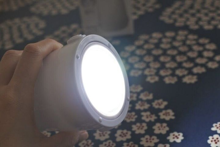 スイッチを押すと、ハンディライトとして使えるようになっているので災害時の避難にも役立ってくれますよ。オシャレなデザインなので普段はインテリアとして、災害時にはランタンやハンディライトとして役立ってくれるのですごくオススメです!