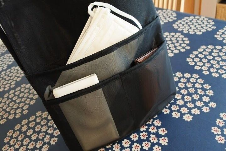 マスクがすっぽり入るポケットもあり、モバイルバッテリーや小物などを分けて収納できるので外出先でリュックの中をガサゴソと探す手間がなくなりますよ!