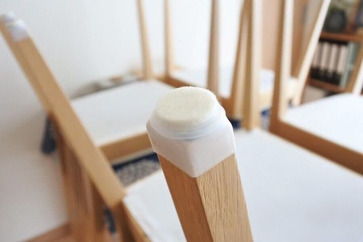 シリコーンを伸ばしながらイス脚にかぶせると一瞬で取り替え完了。シリコーンなのでピッタリ密着してくれるので、どんなにイスをひいても外れません。だけど、引っ張ったら簡単に外れるようになっているので、新しいものに交換が数秒でできてしまうんです。今までフェルトシールを剥がすのに苦労していましたが、劇的にラクになってプチストレス解消されました。