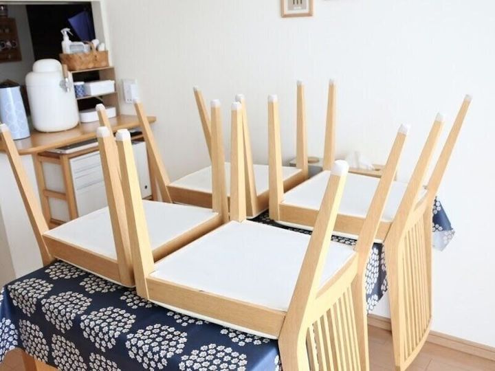 ダイニングテーブルのイス。床にキズがつかないようにキズ防止フェルトシールを貼っている方多いと思います。汚れてきたら、剥がして新しいモノに貼り替え。シールがきれいに取れずイライラ!!そんなプチストレス解消してくれる神商品『ダイソーのシリコーン製イス脚キャップ』をご紹介したいと思います。
